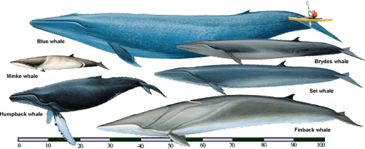 Below I have included a picture with a few different whales and their sizes. The bottom two whales are the humpback and finback as mentioned above for reference.
